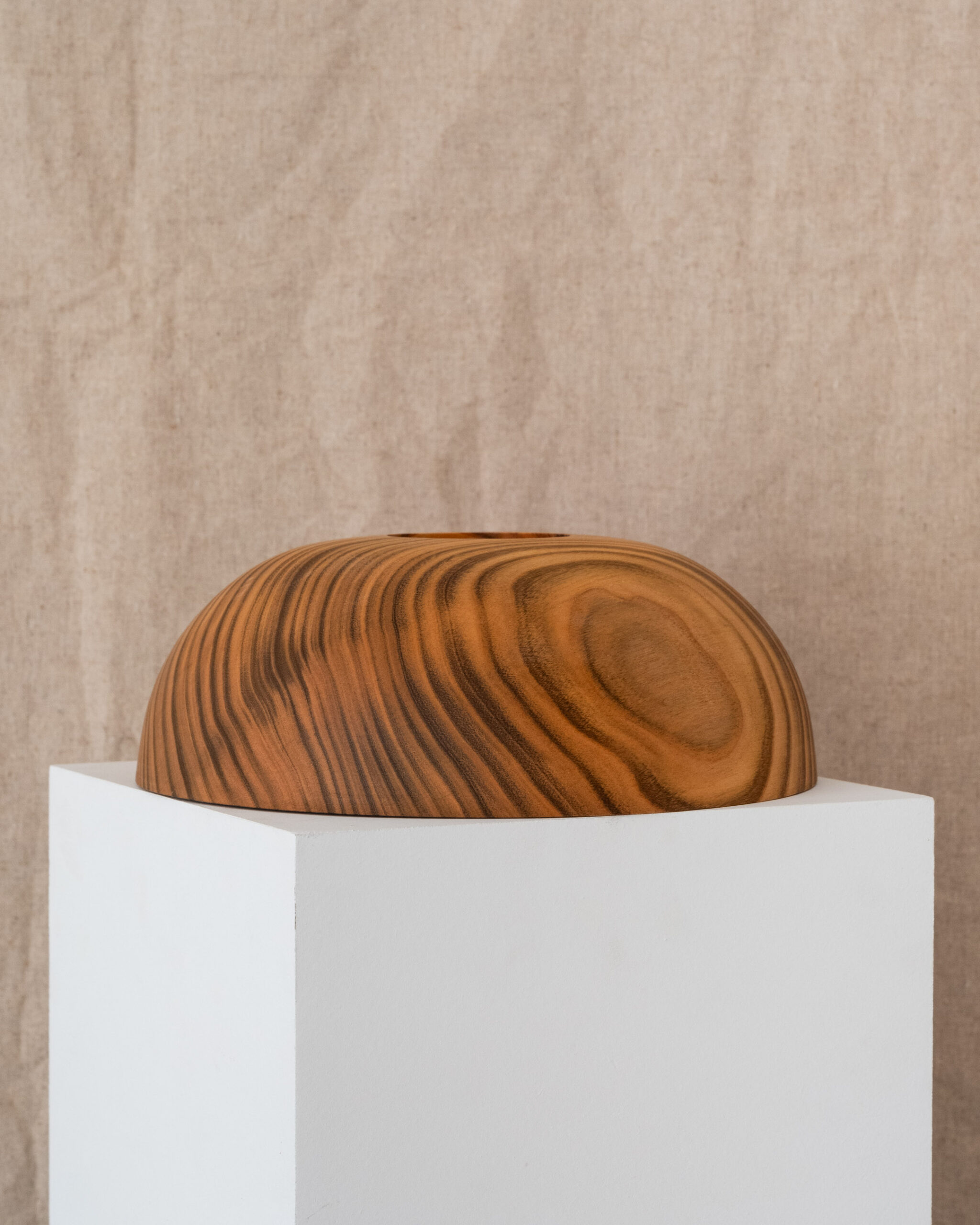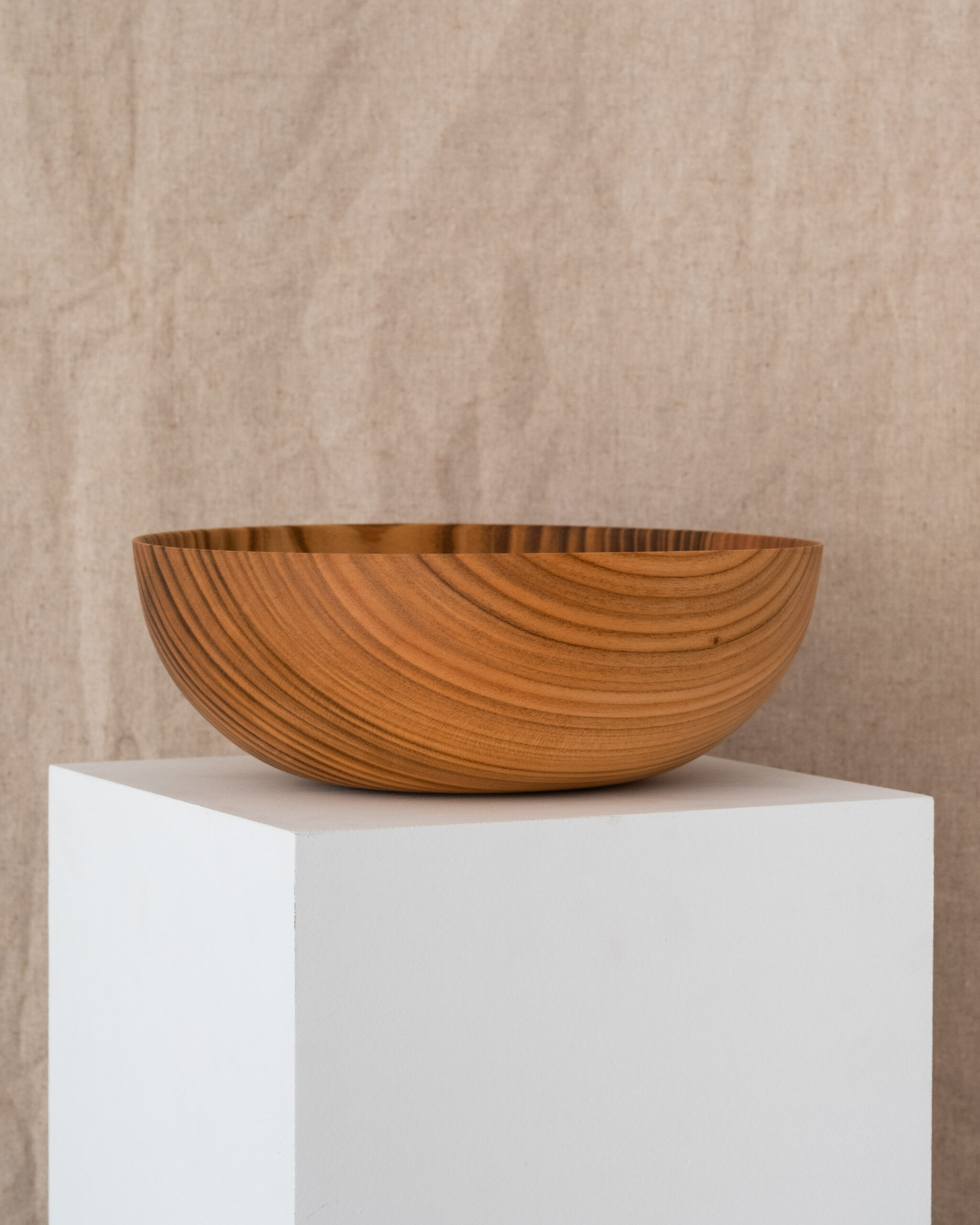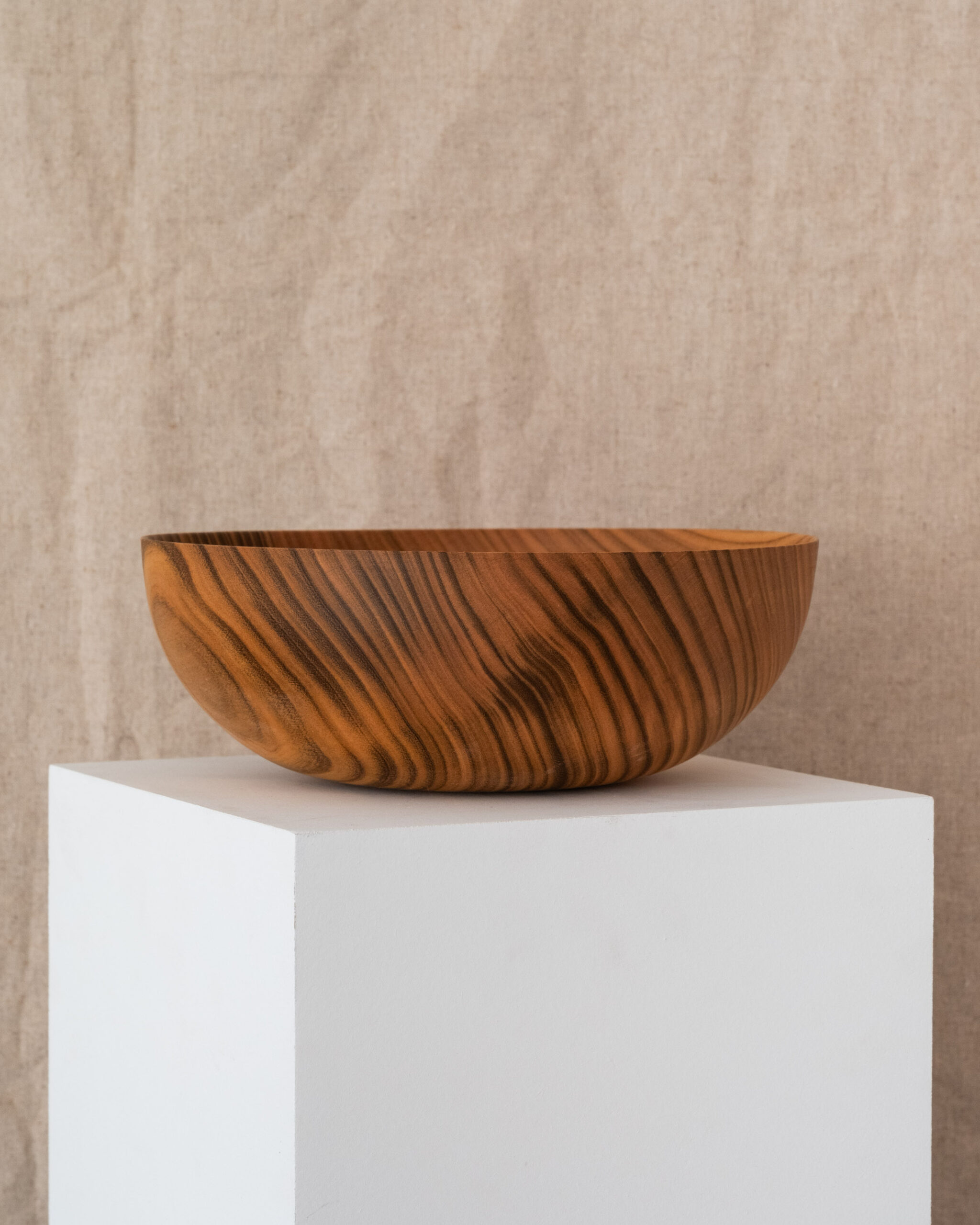 This large sized bowl is from a piece of English cherry. It has some really unique figuring, vivid dark stripes across the whole bowl.